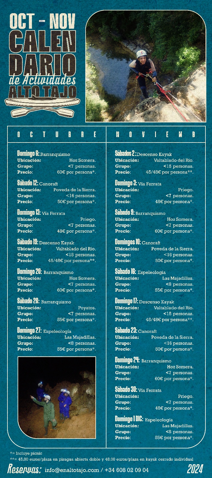 "Hemos pasado un día excelente haciendo el descenso en Kayak. No tenía ninguna experiencia, pero a pesar de ello ha sido una actividad muy divertida. El monitor muy bien, en todo momento iba pendiente de todos y explicándonos como afrontar los diversos rápidos que nos fuimos encontrando. Tuvimos algunos vuelcos, pero todo sirvió para echarnos unas risas y seguir adelante. Nos facilitaron todo el equipo necesario y al terminar la cervecita, el bocata y la fruta. Todo genial!!. Muy recomendable aunque nunca hayas hecho nada similar. Espero tener la oportunidad de volver a repetir. "